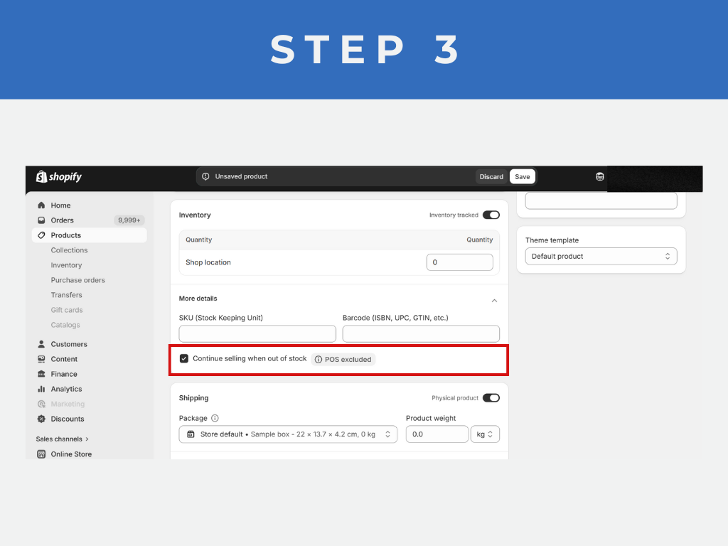Step 3: Enable “Continue Selling When Out of Stock”