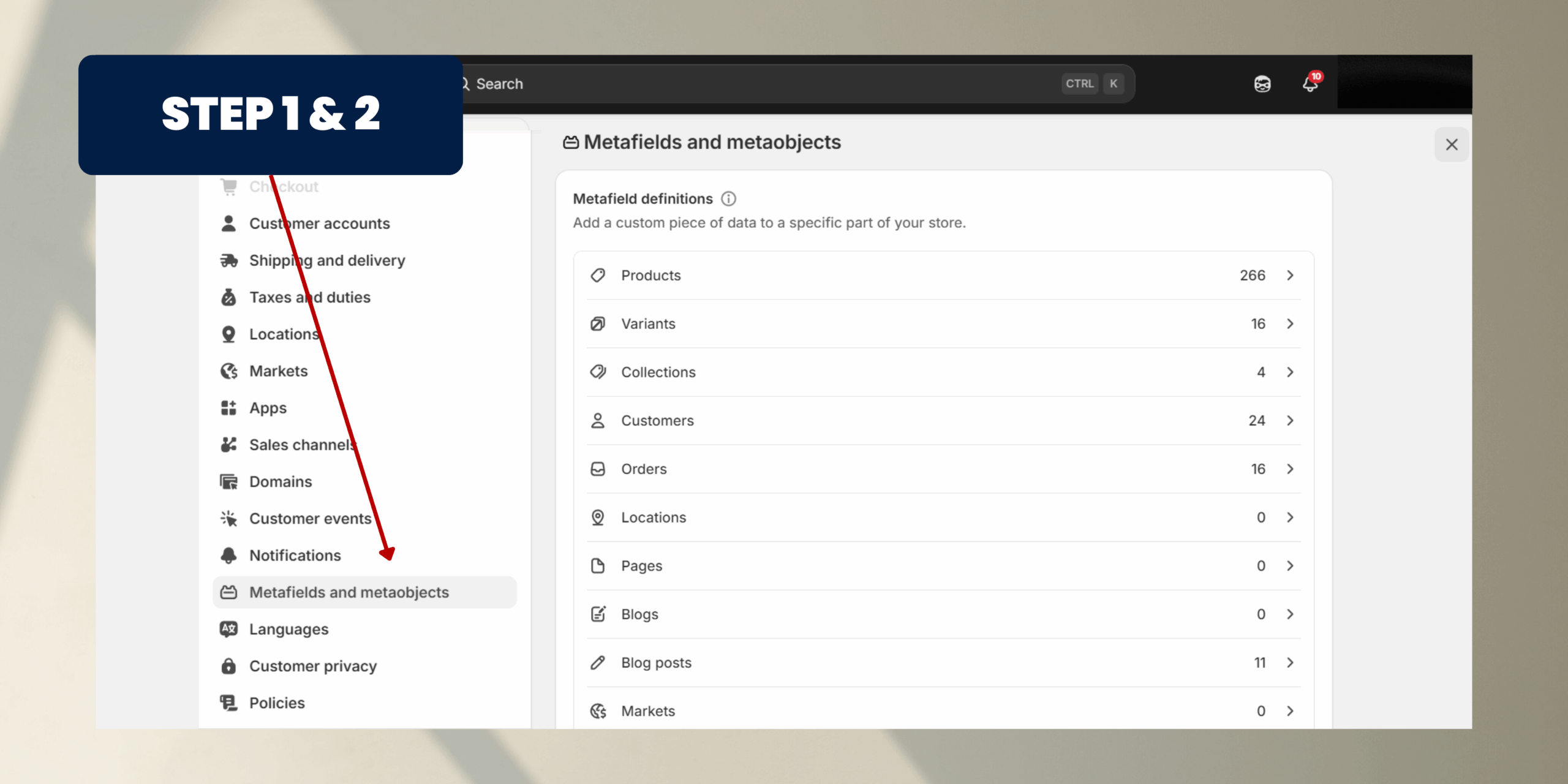 Step 2: Open Metafields