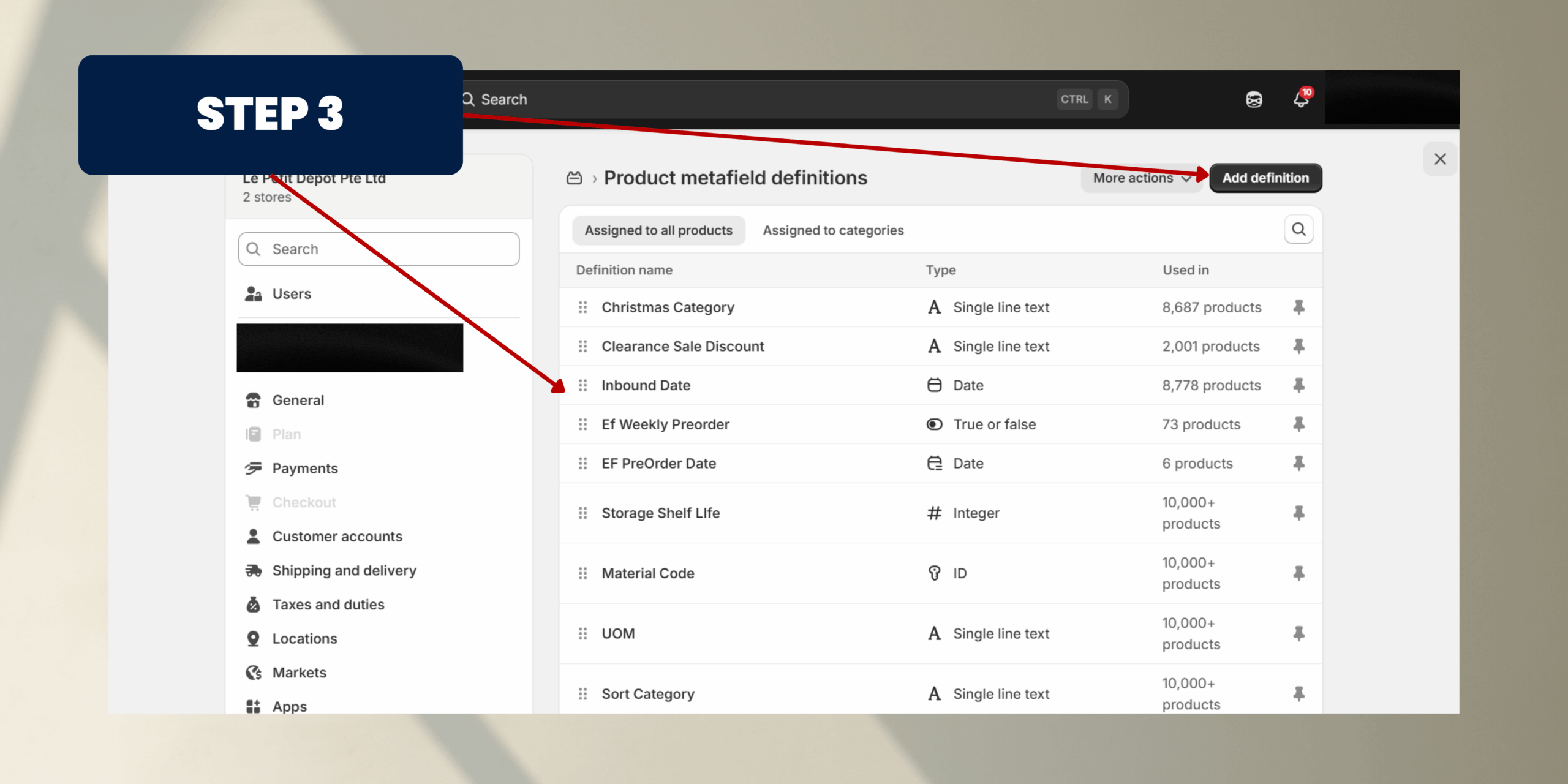 Step 4: Create a Metafield Definition