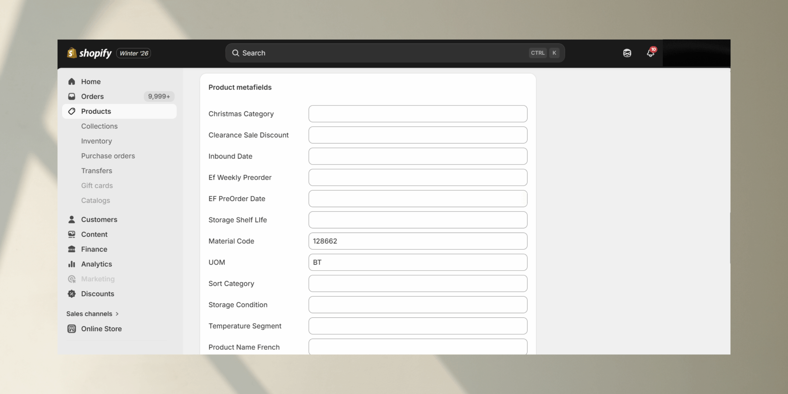 • Click Products (if you want to add metafields to products).